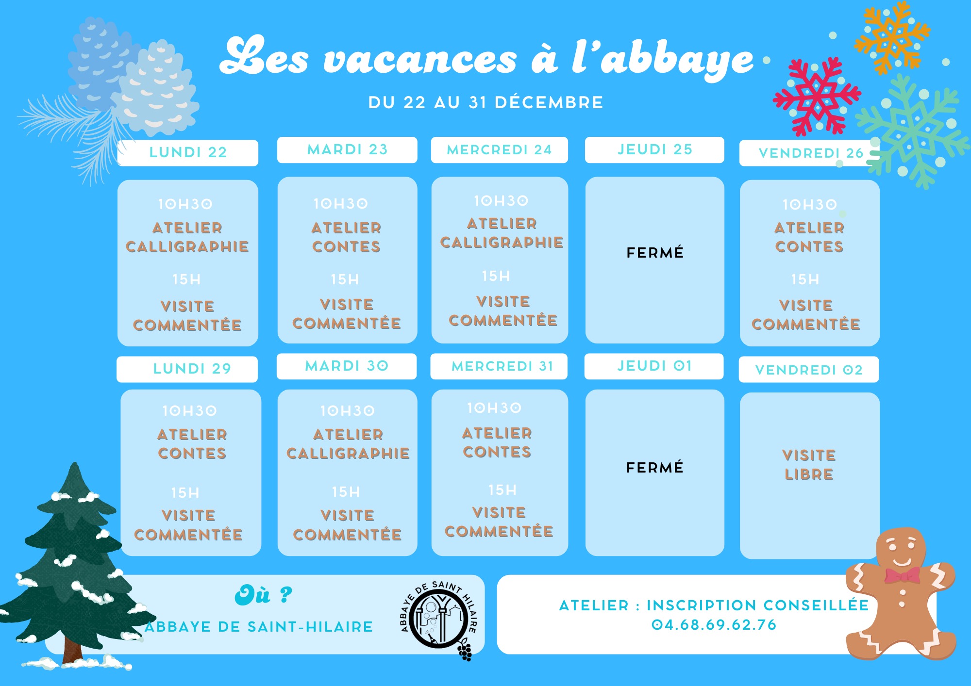 - Du 22 au 31 Décembre 2025 Médiation culturelle Animations des vacances de Noël organisées par les agents de l'abbaye ⋅ Télécharger la pièce jointe Abbaye