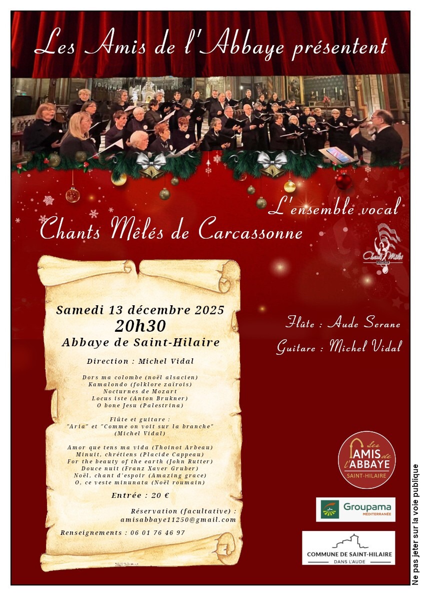 - Samedi 13 Décembre à 20 h 30 Concert Chants mêlés de Carcassonne organisé par les Amis de l'Abbaye ⋅ Télécharger la pièce jointe Église