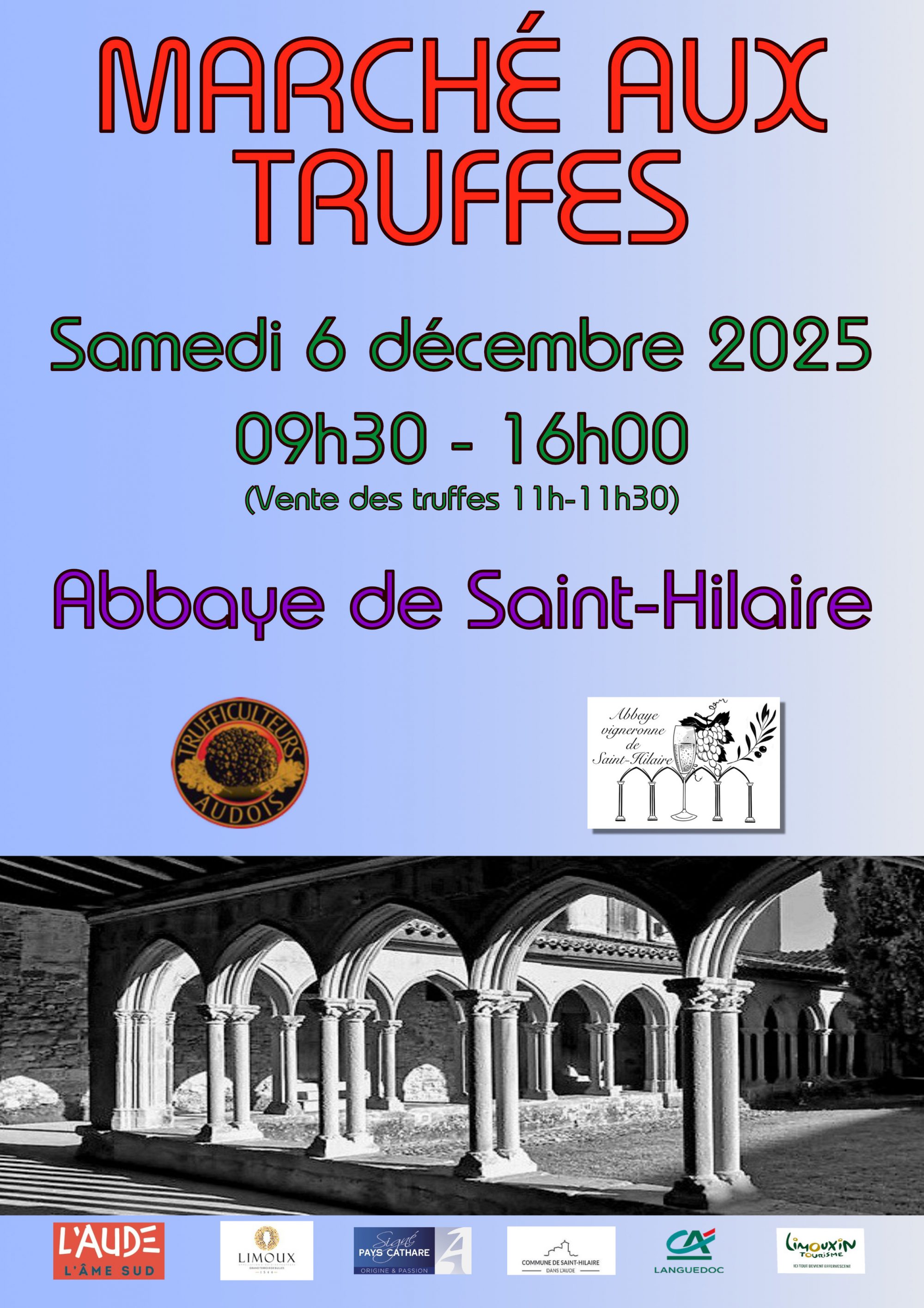 - Samedi 06 Décembre de 09 h 30 à 16 h Marché Marché aux truffes organisé par l'Association Abbaye vigneronne et Trufficulteurs audois ⋅ Télécharger la pièce jointe Abbaye